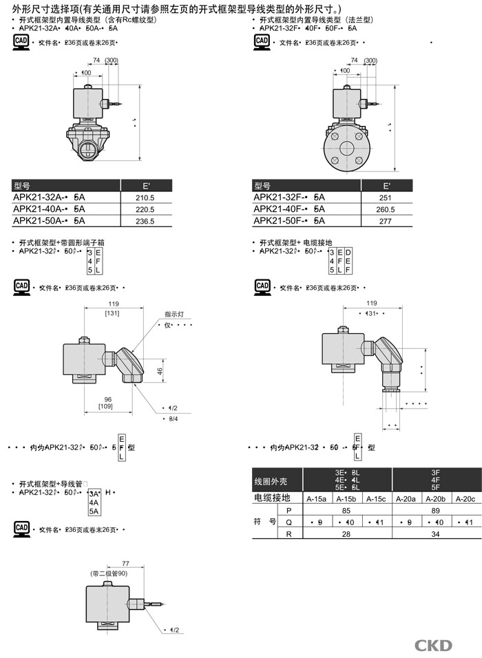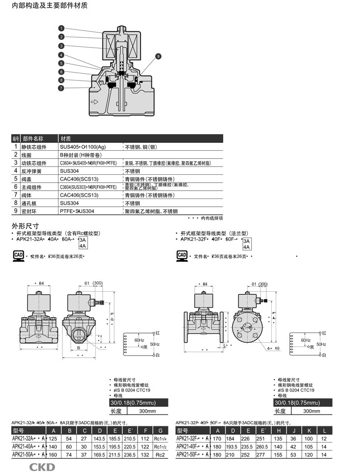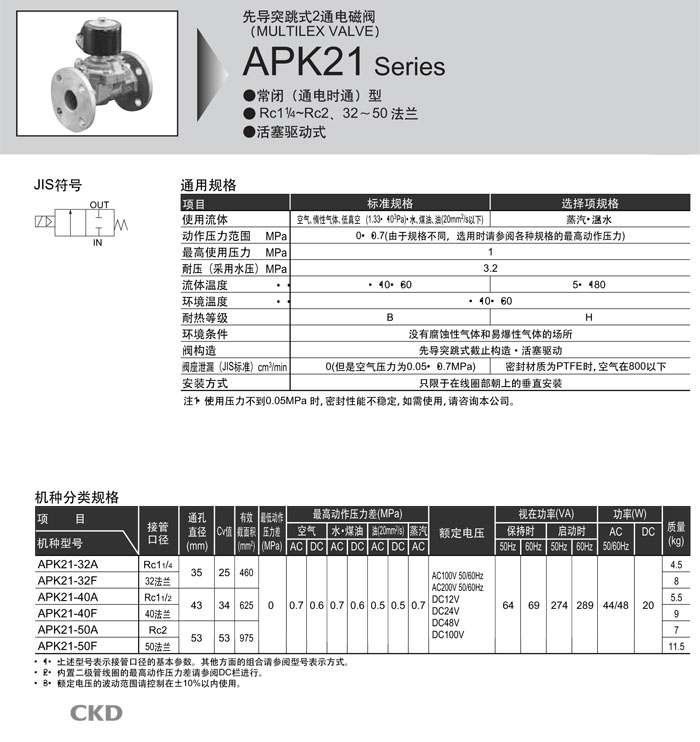 APK21-32A,APK21-32F,APK21-40A,APK21-40F,APK21-50A,APK21-50F,CKD先導式2通電磁閥