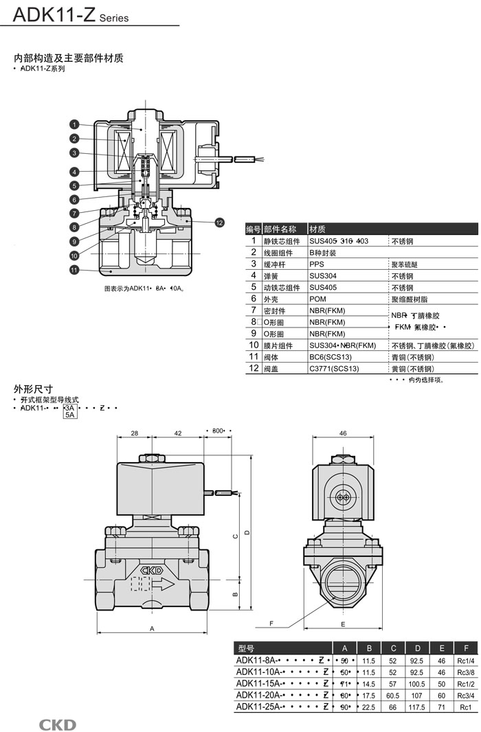 ADK11-8A,ADK11-10A,ADK11-15A,ADK11-20A,ADK11-25A,CKD先導(dǎo)式式2通電磁閥