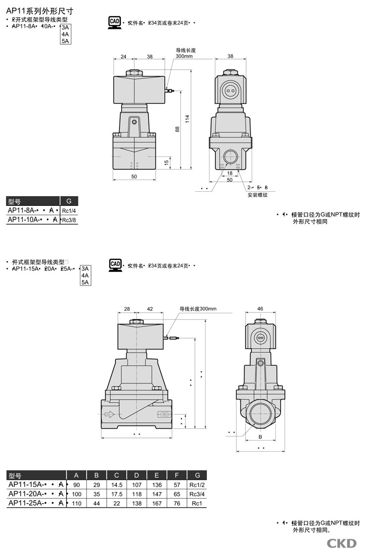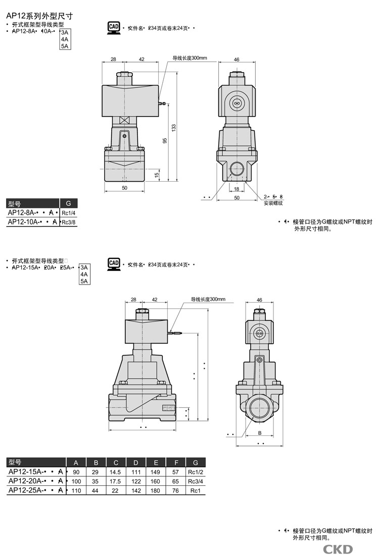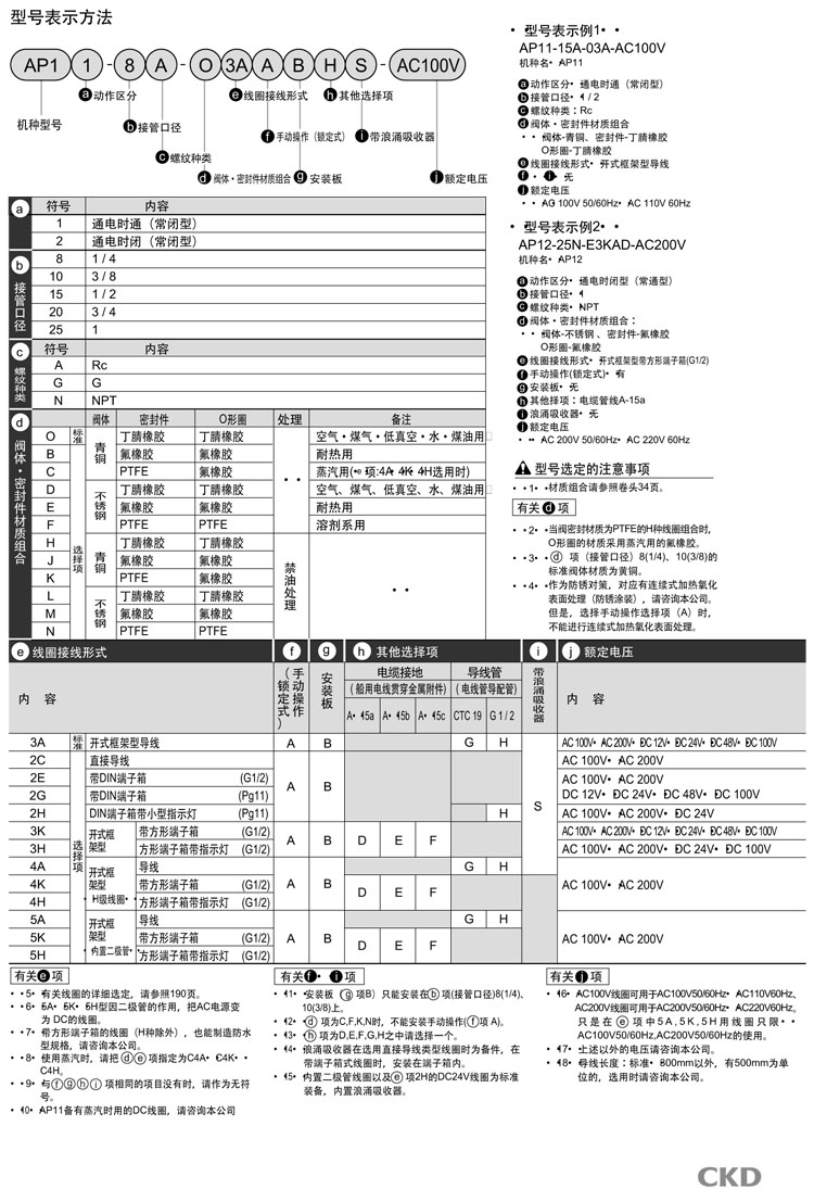 AP12-25A-N4A AP12-25A-N4K AP12-25A-N4H AP12-25A-N5A AP12-25A-N5K AP12-25A-N5H CKD先導式式2通電磁閥