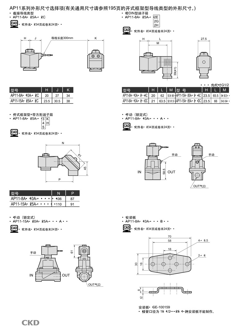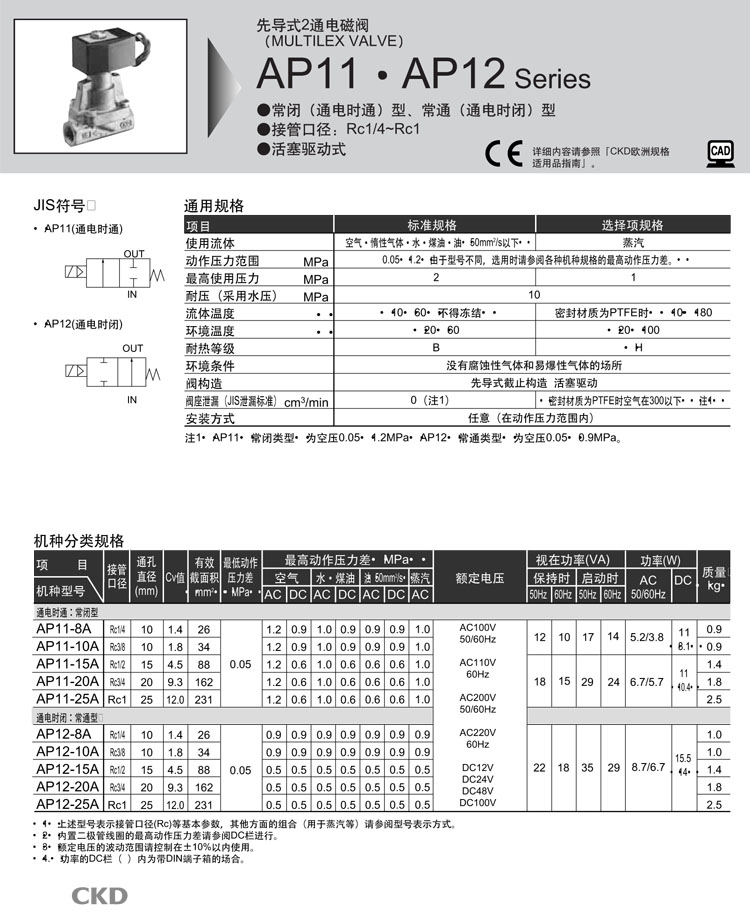 AP11-25A-N4A,AP11-25A-N4K,AP11-25A-N4H,AP11-25A-N5A,AP11-25A-N5K,AP11-25A-N5H,CKD先導(dǎo)式式2通電磁閥