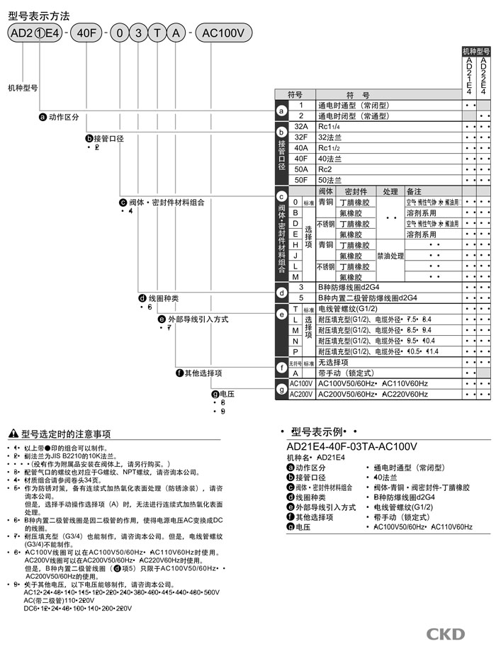 AD21E4-32A,AD21E4-32F,AD21E4-40A,AD21E4-40F,AD21E4-50A,AD21E4-50F,CKD先導(dǎo)式2通電磁閥