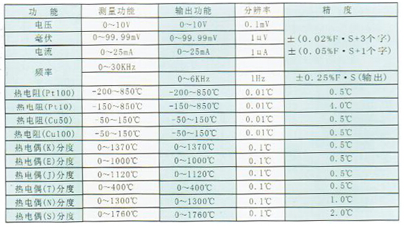●微電腦控制,多種功能:可測量和模擬輸出各種熱電偶和熱電阻信號,0-20mA電流信號,0-5V電壓信號及冷端室溫溫度。