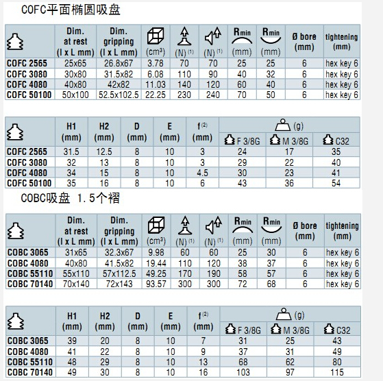 CFC35,CFC50,CFC75,CFC100,CFC125,CBC30,CBC45,CBC60,CBC85,CBC115,COVAL吸盤高性能吸盤