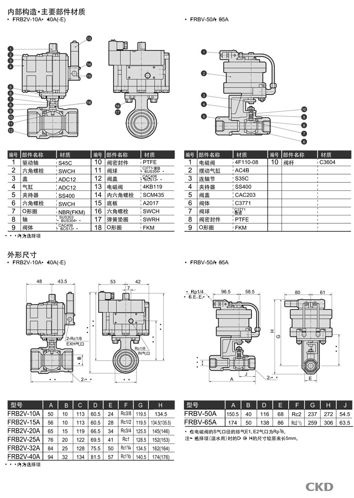 FRB2V-10A,FRB2V-15A,FRB2V-20A,FRB2V-25A,FRB2V-32A,FRB2V-40A,FRBV-50A,FRBV-65A,CKD氣動(dòng)式球閥2通閥