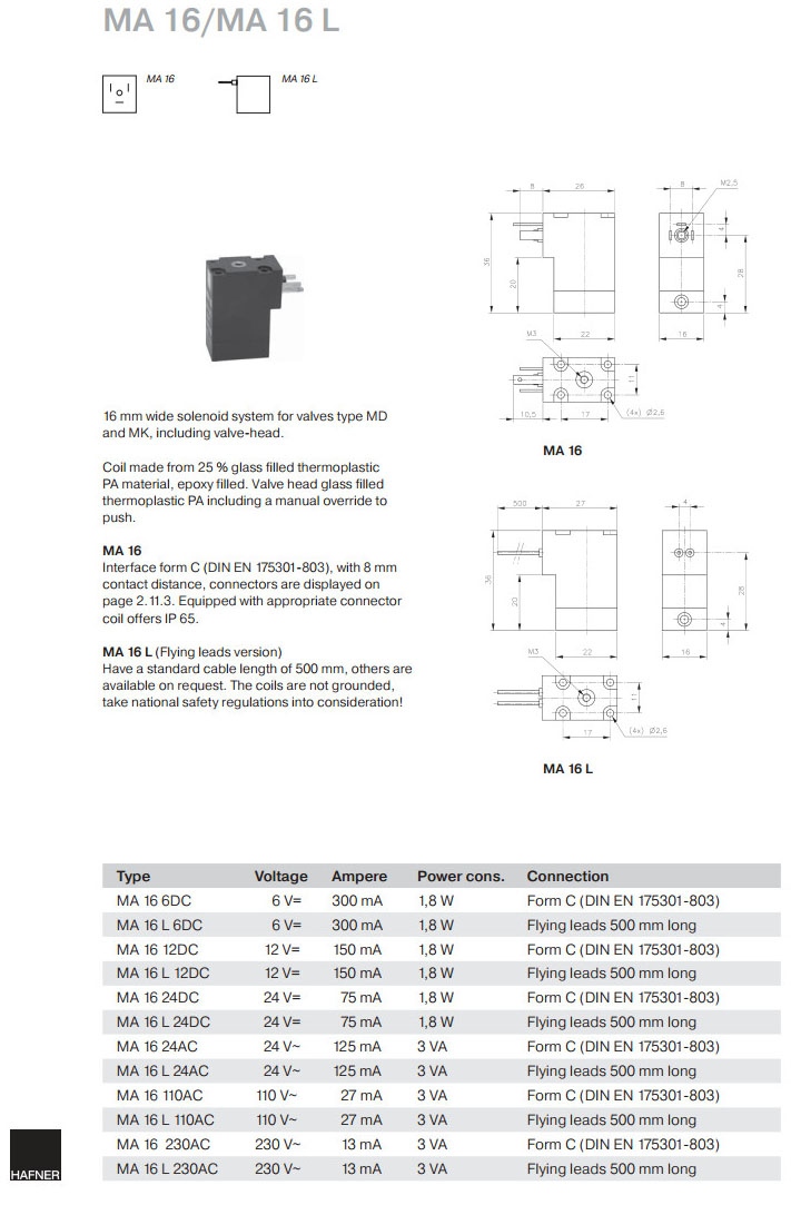 MA166DC,MA16L6DC,MA1612DC,MA16L12DC,MA1624DC,MA16L24DC,MA1624AC,MA16110AC,MA16230AC,Hafner電磁線圈 |