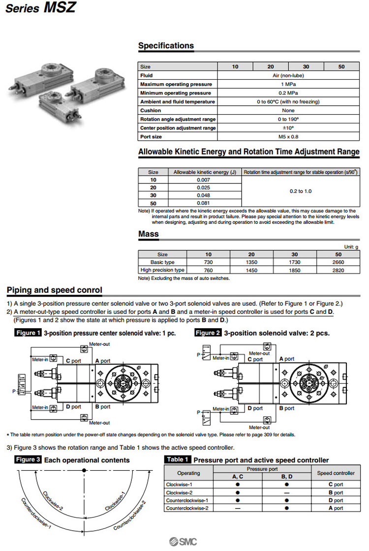 MSZA10A,MSZA20A,MSZA30A,MSZA50A,MSZB10A,MSZB20A,MSZB30A,MSZB50A,SMC3位擺臺(tái)氣缸