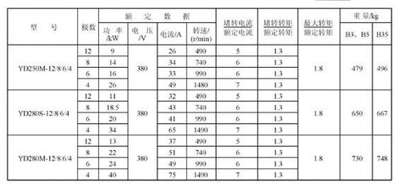 YD112M-8/6/4,YD132S-8/6/4,YD132M1-8/6/4,YD132M2-8/6/4,YD160M-8/6/4,YD160M-6/4/2,