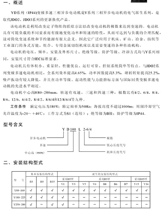 YD160L-8/6/4,YD180L-8/6/4,YD200L8/6/4,YD225S-8/6/4,YD225M-8/6/4,YD250M-8/6/4,