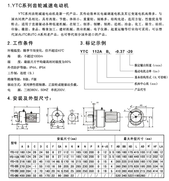 YTC112,YTC112A,YTC170,YTC205,YTC250,YTC280,齒輪減速電動(dòng)機(jī)