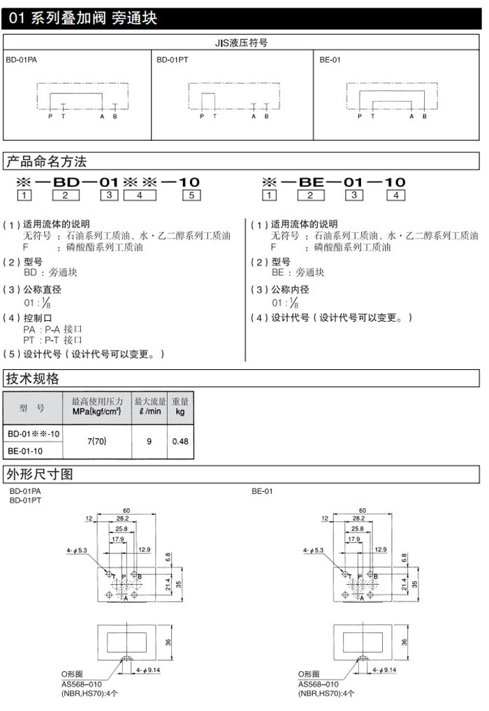 BD-01PA-10,BD-01PT-10,BE-01-10,DAIKIN疊加閥旁通塊