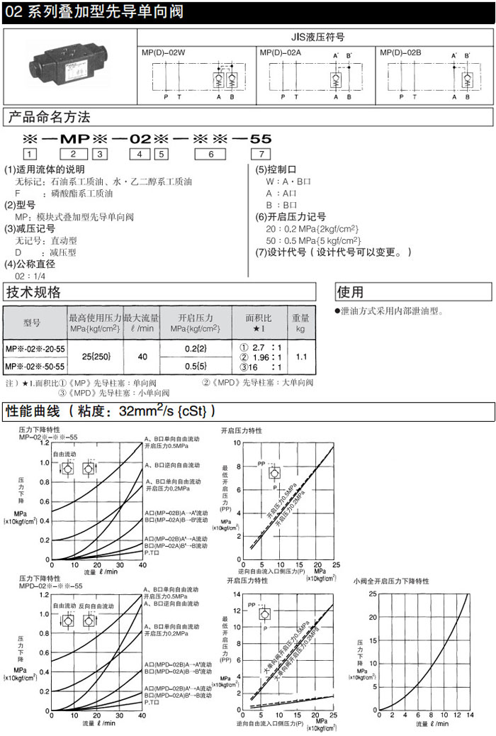 MP-02W,MP-02A,MP-02B,MPD-02W,MPD-02A,MPD-02B,MP-02W-20-55,DAIKIN疊加型先導單向閥