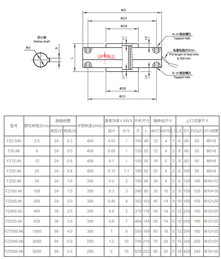 FZ-AK型( 空心軸聯(lián)結(jié)、止口支撐、立式)磁粉制動器