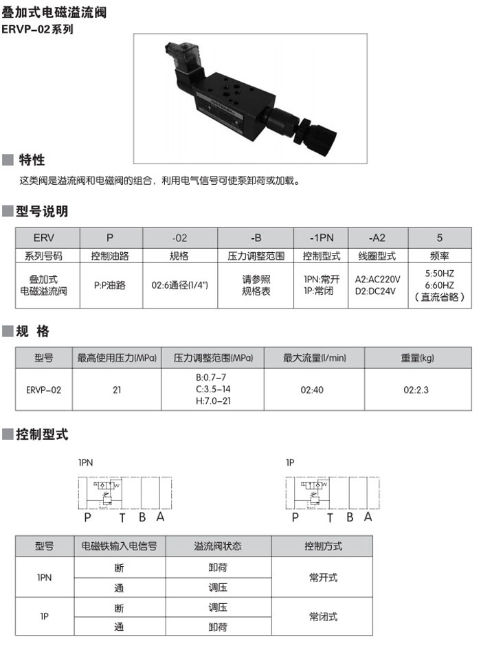 ERVP-02-B,ERVP-02-C,ERVP-02-H,ERVP-02-B-1PN-A2,ERVP-02-C-1PN-A2,疊加式電磁溢流閥