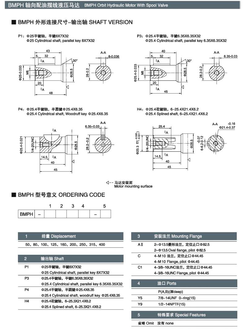 BMPH-50,BMPH-80,BMPH-100,BMPH-125,BMPH-160,BMPH-200,BMPH-250,BMPH-315,BMPH-400,軸向配油擺線馬達(dá)