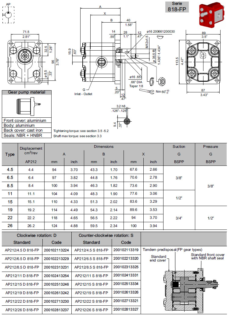 AP212/6.5-D-218-FP,AP212/11,AP212/15,AP212/19,AP212/22,Bucher外嚙合齒輪泵