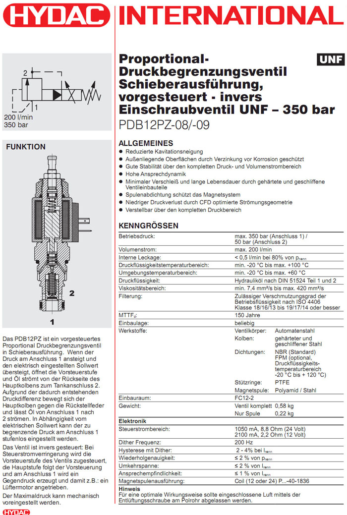 PDB12PZ-09-C-N-087V087-12PG-2.2,PDB12PZ-09-C-N-087V087-24PG-8.8,HYDAC比例溢流閥