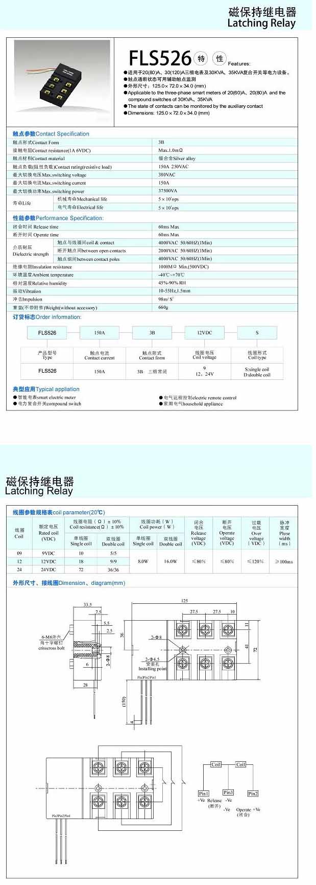FLS526-150A,磁保持繼電器