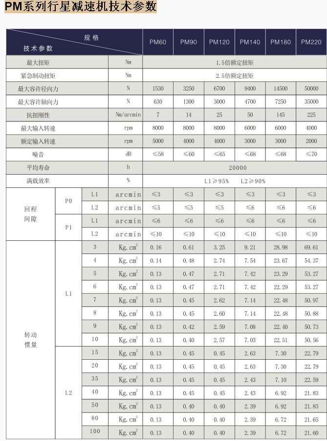 PM060-L1,PM090-L1,PM120-L1,PM140-L1,PM180-L1,PM220-L1,行星減速機