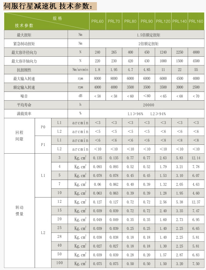 PRL060,PR0L70,PRL080,PRL090,PRL120,PRL140,PRL160,行星減速機